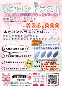 まだ間に合う調光キャンペーン!! 2024年9月29日 最終更新日時 : 2024年9月29日 sanaimegane こんにちは😁 宮側店の土屋です‼︎ 9月のキャンペーンまだ間に合う 調光レンズがお買い得🉐 紫外線か可視光線で色が変わる✨👓→🕶️ 室内はメガネ👓 外(日中)はサングラス🕶️ 一本で二役!! さらに UVカット、ブルーライトカット、眩しさカットの トリプルカット‼️ 是非お試し下さい♪ Follow me!