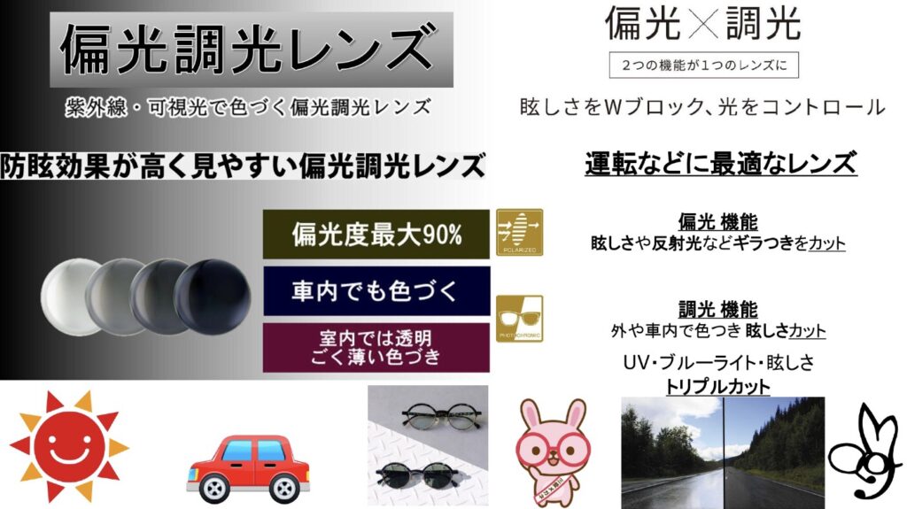 眩しさをダブルカットで運転などに最適なレンズです‼️