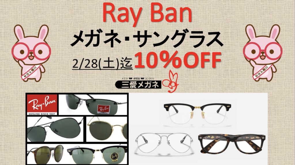 本日2/28(土)まで‼️RayBan10%OFF!!👓🕶️✨ 2026年2月28日 最終更新日時 : 2026年2月28日 sanaimegane こんにちは😁 ウニクス店の土屋です‼︎ 本日までレイバンのメガネ・サングラスが10%OFF‼️ ※店舗在庫に限ります 今がチャンス!!✨ 是非お見逃しなくご利用下さい!! Follow me!