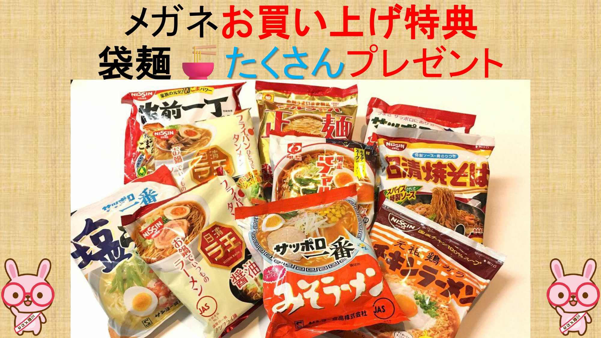 お買い上げ特典!!袋麵🍜プレゼント!! 10/31まで 2025年10月1日 最終更新日時 : 2025年9月24日 sanaimegane 10月はなんと!! メガネ一式9,800円以上で袋麺プレゼント🍜🎁 金額に応じて くじを引いて頂き(はずれ なし) もらえる個数が決まりますので たくさん もらえるかは運次第!! メガネを買って袋麵を持ち帰ろう!!🍜✨