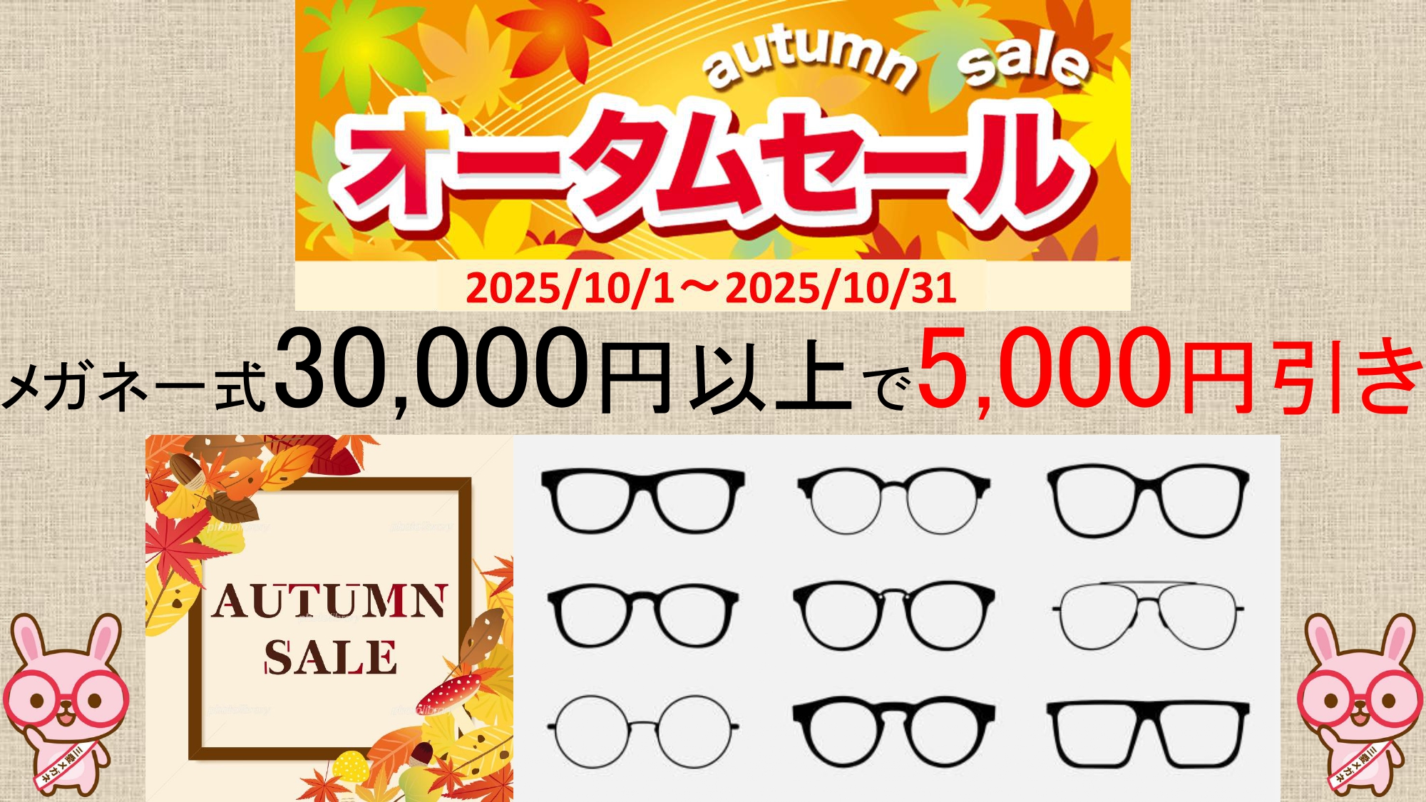 10月はオータムセール!!👓✨ 2025年10月1日 最終更新日時 : 2025年9月24日 sanaimegane 10月のキャンペーンは メガネ一式30,000円以上で5,000円引き!! 秋のお買い得セール!! 行楽シーズン到来!! お出かけ先の景色を是非 新しいメガネで見ませんか? 新しい季節を新しいメガネで👓✨ おしゃれメガネで見やすく!!